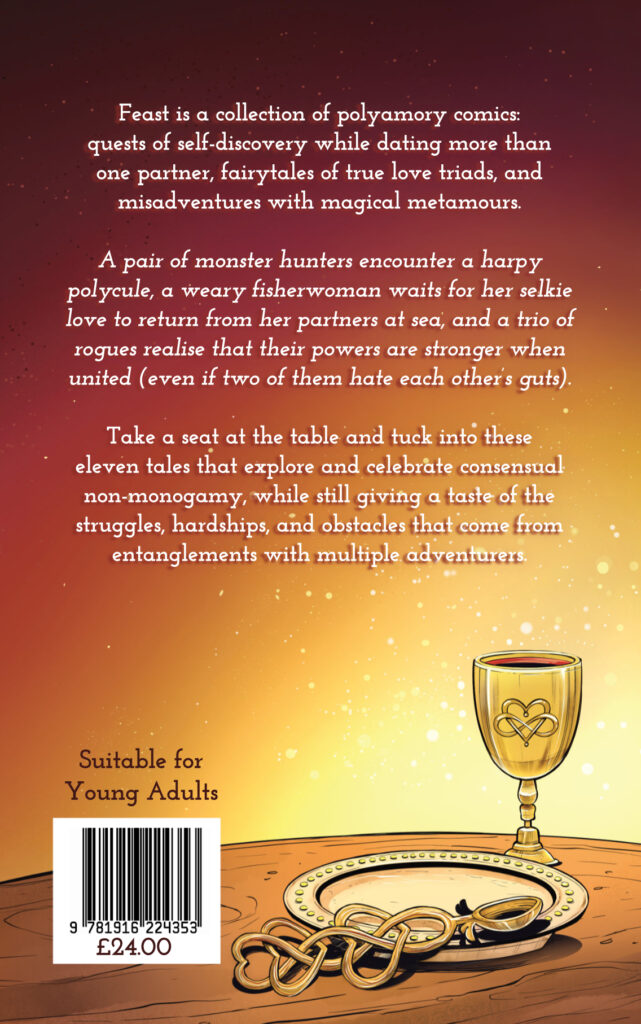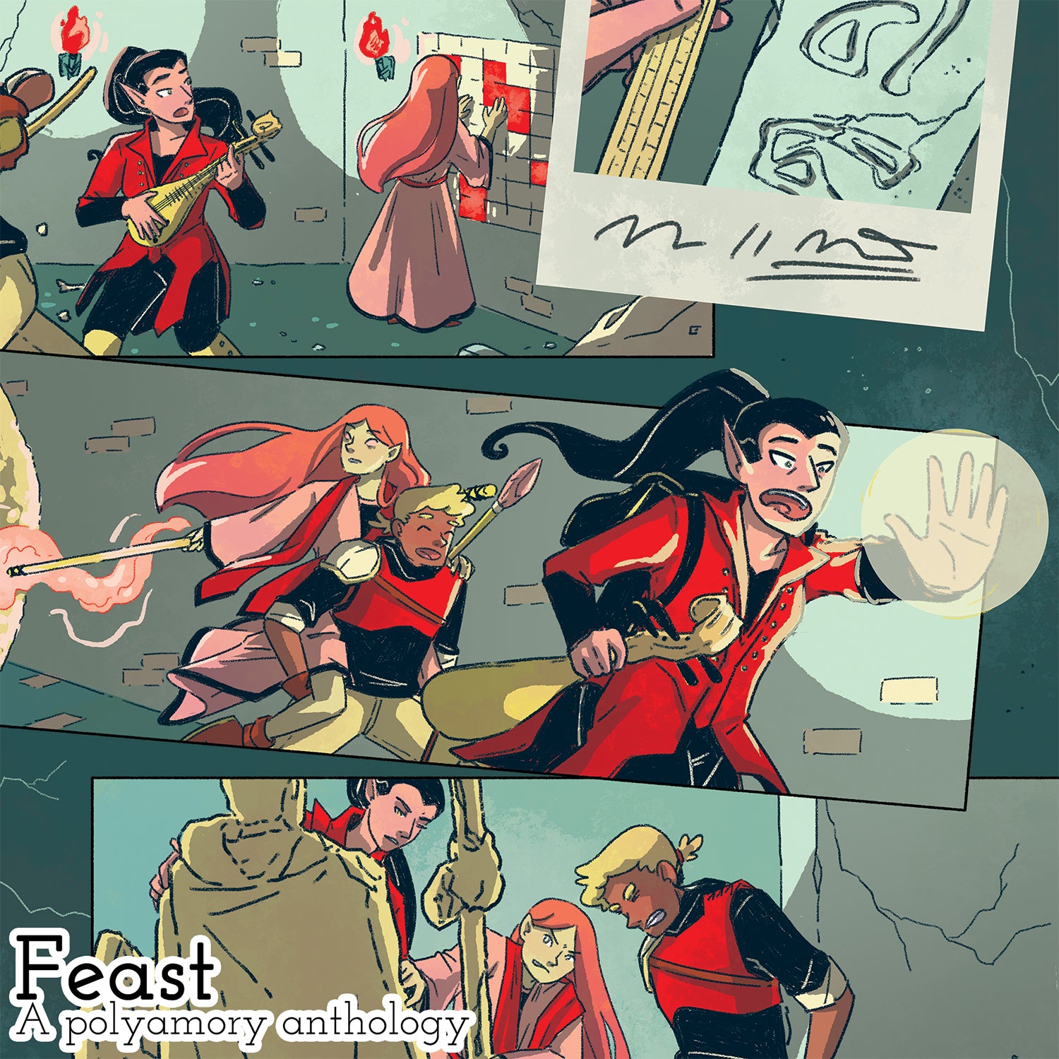Feast is a collection of polyamory comics: quests of self-discovery while dating more than one partner, fairytales of true love triads, and misadventures with magical metamours.