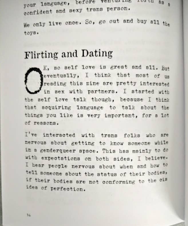 How much of your sex life is informed by gender norms that you may not even be conscious of? Eli Sachse's zine is all about learning to explore your sexuality in a healthier way, with great boundaries and consent, whether by yourself, with strangers, or with trusted others. This zine is a thoughtful friend with good. advice, helpful phrases ("No, thank you," is a favorite), and a nonjudgmental perspective of having been there and done all those things. The zine is especially written for people who are exploring their gender identity or beginning to transition, and is also valuable reading for anyone who wants to be a better sexual partner to themselves and others.