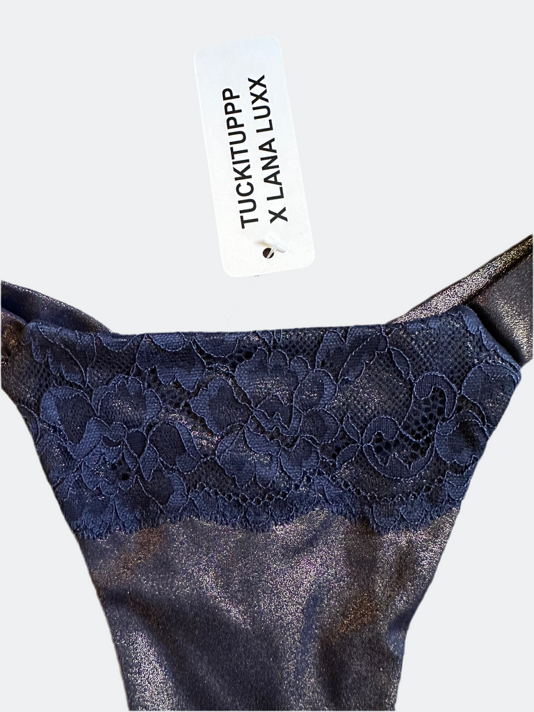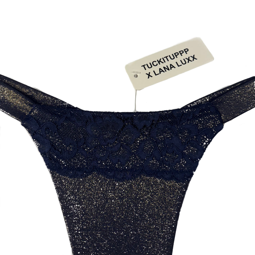 Entworfen von Lana Luxx exklusiv für Tuckituppp! Diese glamourösen Gaffs in schimmerndem Marine-Gold haben ein Spitzen-Overlay und ein Lycra-Außenmaterial. Die atmungsaktive Baumwoll-Innenseite hält den Intimbereich frisch und infektionsfrei und verhindert Ausschläge, Schmerzen und Gerüche. Perfekt für den täglichen Gebrauch, mit drei Lagen Stoff auf der Vorderseite und zwei auf der Rückseite für mehr Komfort. Die Größentabelle ist geschlechtsneutral und basiert auf Inches. Dieses Kleidungsstück fällt klein aus und ist eng anliegend - wählen Sie eine Nummer größer, wenn Sie es mit hoher Taille tragen möchten.
