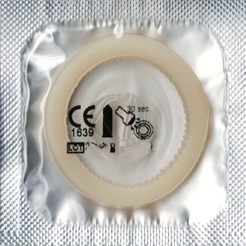 Glattes, schlichtes Naturlatex, kombiniert mit einem klassischen Reservoir und nicht-spermizidem Silikon-Gleitmittel.