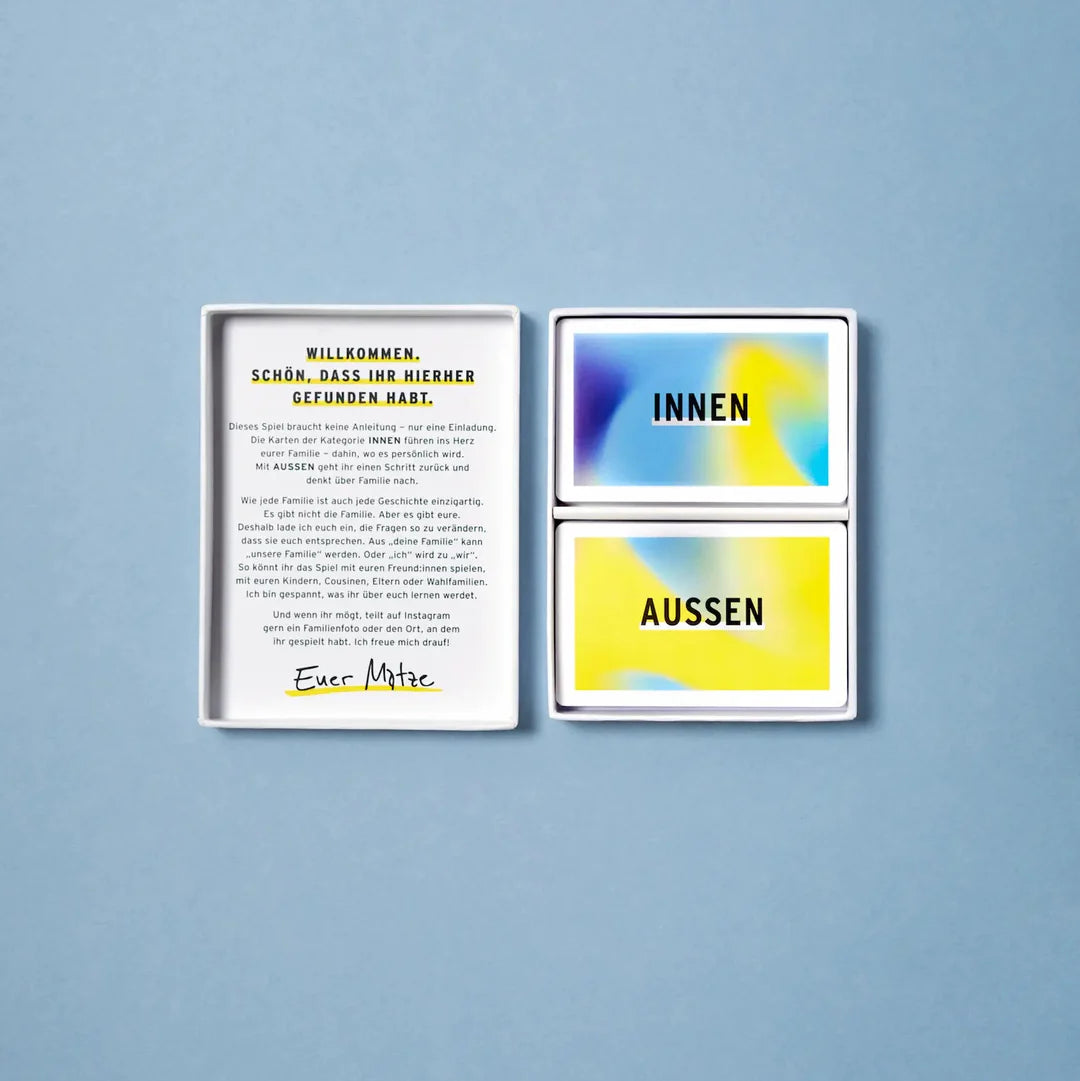 Genau deshalb sollten wir über sie – und mit ihr – sprechen. Neugierig fragt Familie mal federleicht nach dem Lieblingsfamilienfoto und mal tiefgründig nach dem, was die eigene Familie zusammenhält. Die 66 Fragen im kompakten Format blicken auf Erwartungen und Erinnerungen, Zuhause und Zusammenhalt. Für die Familie und alle, die sich als solche verstehen.