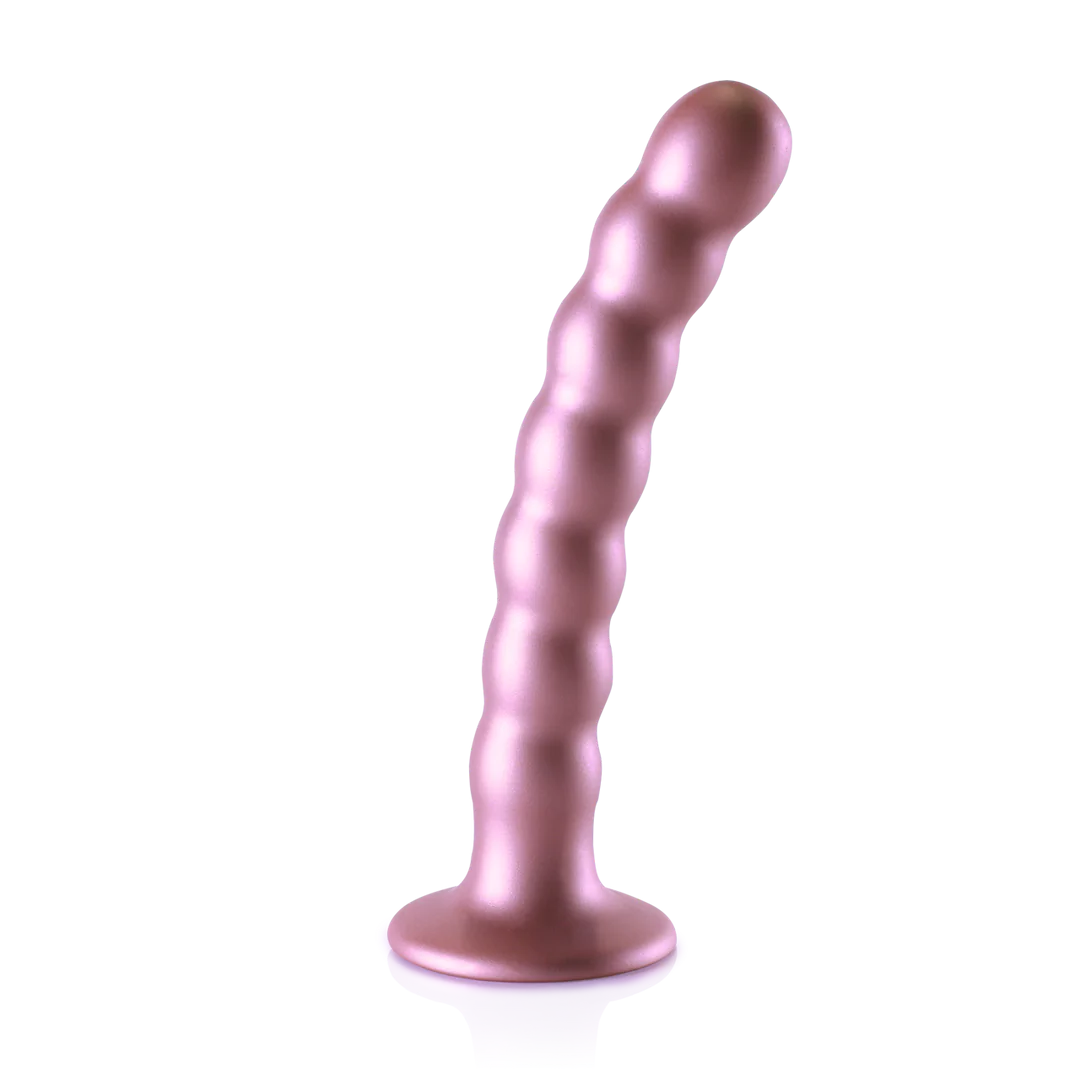Der Beaded G-Spot Dildo überzeugt nicht nur mit seiner sanften Textur und weichen Oberfläche, sondern auch mit seinem starken Saugnapf und der schönen Metallic-Farbe.