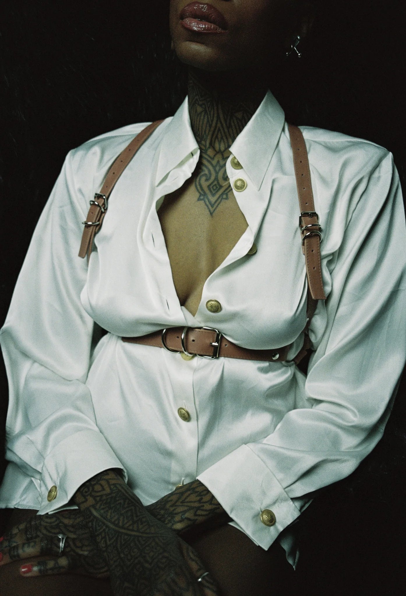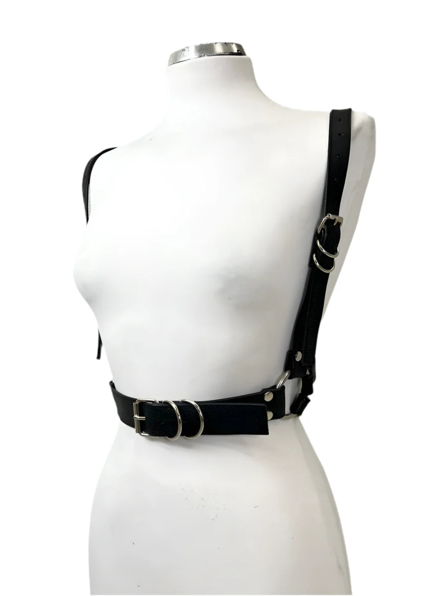 Ein vielseitiger Harness, der sich sowohl als Alltagsaccessoire als auch für einen verführerischen Look eignet!  Aus dem Hause des queeren Berliner Fetisch Atelier Lash fetish gear, bietet dieser Harness Qualität, Stil und Komfort. Das Design zeichnet sich durch zwei Träger aus, die direkt an der Taille sitzen und mit Trägern verbunden sind, die an beiden Seiten der Brust nach unten verlaufen – für eine vorteilhafte Passform, die Ihre Figur betont. Der Fer Harness besteht aus dünnen, verstellbaren Trägern, um maximalen Komfort und Tragekomfort zu gewährleisten.