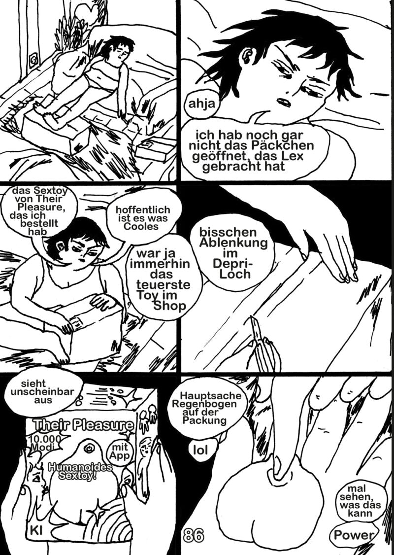Das Sextoy-Business verkauft, Freund*in Patrice auffällig schwer erreichbar, im eigenen Körper unwohl: Tony weiss nicht, was mit sich anfangen. Da kommt der Gutschein von Tonys ehemaliger Sextoy-Firma gerade recht. Kurz entschlossen bestellt Tony das teuerste Produkt — und erhält einen Sex-Roboter, der seine Gestalt wandeln kann! Tony tauft den Roboter auf den Namen Sandy Cheeks, modelliert ihn gemäss den eigenen Wunschvorstellungen und beginnt sich mit ihm über Körperlichkeit, Sexualität, Liebe und Freundschaft zu unterhalten. Trotz ihrer limitierten Funktionen erweist sich Sandy dabei als wertvolles Gegenüber. Als Sandy Tony schliesslich die Fähigkeit überträgt, den eigenen Körper zu verändern, schöpft Tony neue Energie — bis eines Tages überraschend Patrice auftaucht. Dabei stets an Tonys Seite: Friends, die Tony wertschätzen und unterstützen, egal, wie Tony aussieht oder sich verändern will.